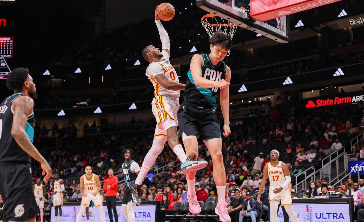 亚特兰大老鹰坐镇主场对阵波特兰开拓者,两队分列各自分区第九,照理实力应该不分伯仲,不曾想老鹰不讲武德,狂胜34分之多。刚刚伤愈复出的球队老大杰伦-约翰逊状态不佳,仅仅交出8分8篮板8助攻的三单成绩单,饶是如此,老鹰仍然打出了酣畅淋漓、近乎一边倒的比赛,这就不得不提替补出场却贡献20分7篮板3助攻2抢断的库明加,这位勇士旧将仅仅出战25分钟,运动战10中7,效率何其之高,个人正负值高达+20。